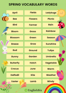 Now, let’s move on to the vocabulary words list of the spring theme