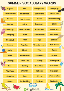 Summer Season Vocabulary Words