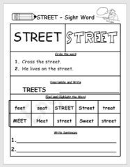 Rated 0 out of 5$1.00Original price was: $1.00.$0.00Current price is: $0.00.Street Sight Word Printable Worksheet