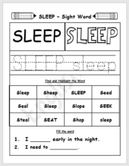 Rated 0 out of 5$1.00Original price was: $1.00.$0.00Current price is: $0.00.Sleep Sight Word Printable Worksheet