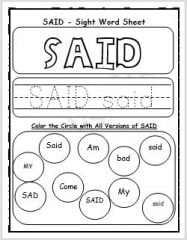 Rated 0 out of 5$1.00Original price was: $1.00.$0.00Current price is: $0.00.Said Sight Word Printable Worksheet